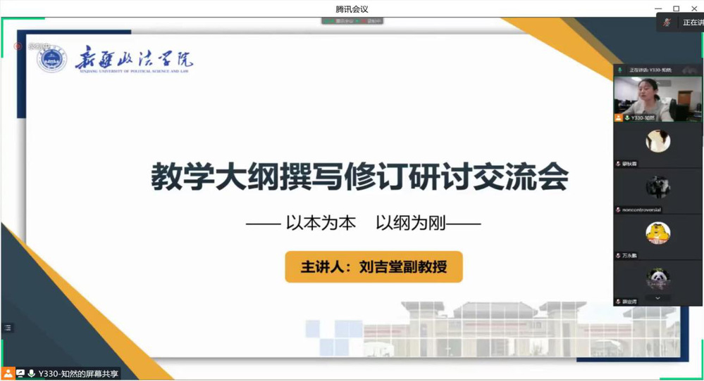 交流研讨环节,李鹏鹏老师针对“教学大纲的适用”做了专题交流,分析了目前教学大纲撰写修订与授课教师适用之间的“时间差”、“信息差”等脱节问题,建议授课教师与制定教学大纲的教师加强沟通交流,以保证教学大纲的规范性和适用指导性。