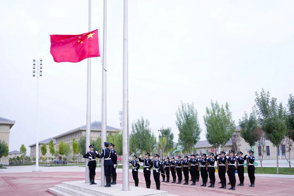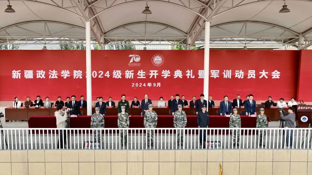 校党委书记、校长陈旭东;第三师图木舒克市党委副书记、副政委,政法委书记,第三师图木舒克市法学会会长张静;武警兵团总队执勤第三支队支队长屈舒;武警兵团总队执勤第三支队参谋长王学俊;校党委副书记魏建华;党委常委、副校长马召伟;党委常委、副校长万朝林;党委常委、纪委书记、监察专员王小强出席开学典礼。相关职能部门、各二级学院主要负责人,武警兵团总队执勤第三支队承训官兵、教师代表、在校生代表、2024级辅导员和军训助理参加典礼。校长助理向前主持典礼。